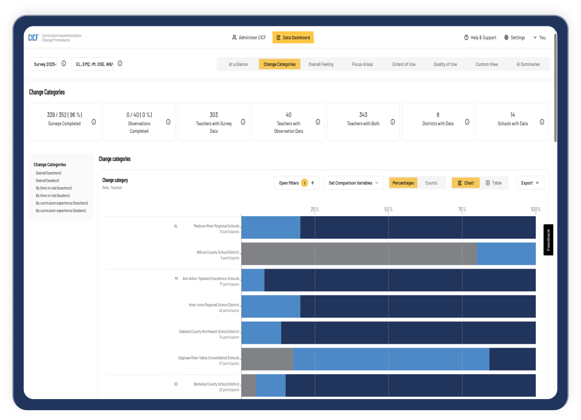 CICF equips leaders with systematically-gathered information about what's really happening in curriculum implementation. The data dashboards promote easy data analysis and action planning.